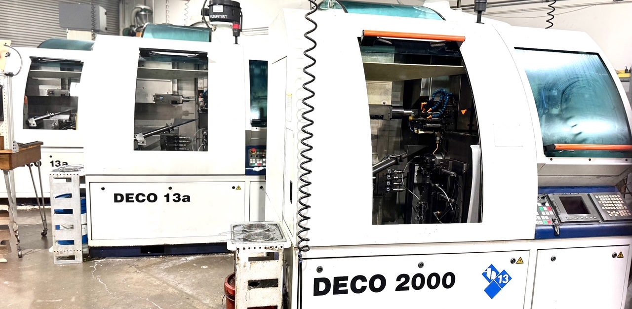 * 3 CNC Swiss Screw machines "Tornos Deco 13" (16 mm (.630 dia) up to .687 dia), with 12 axis capabilities and live tooling